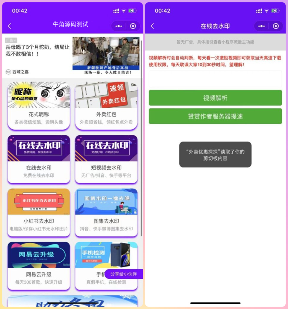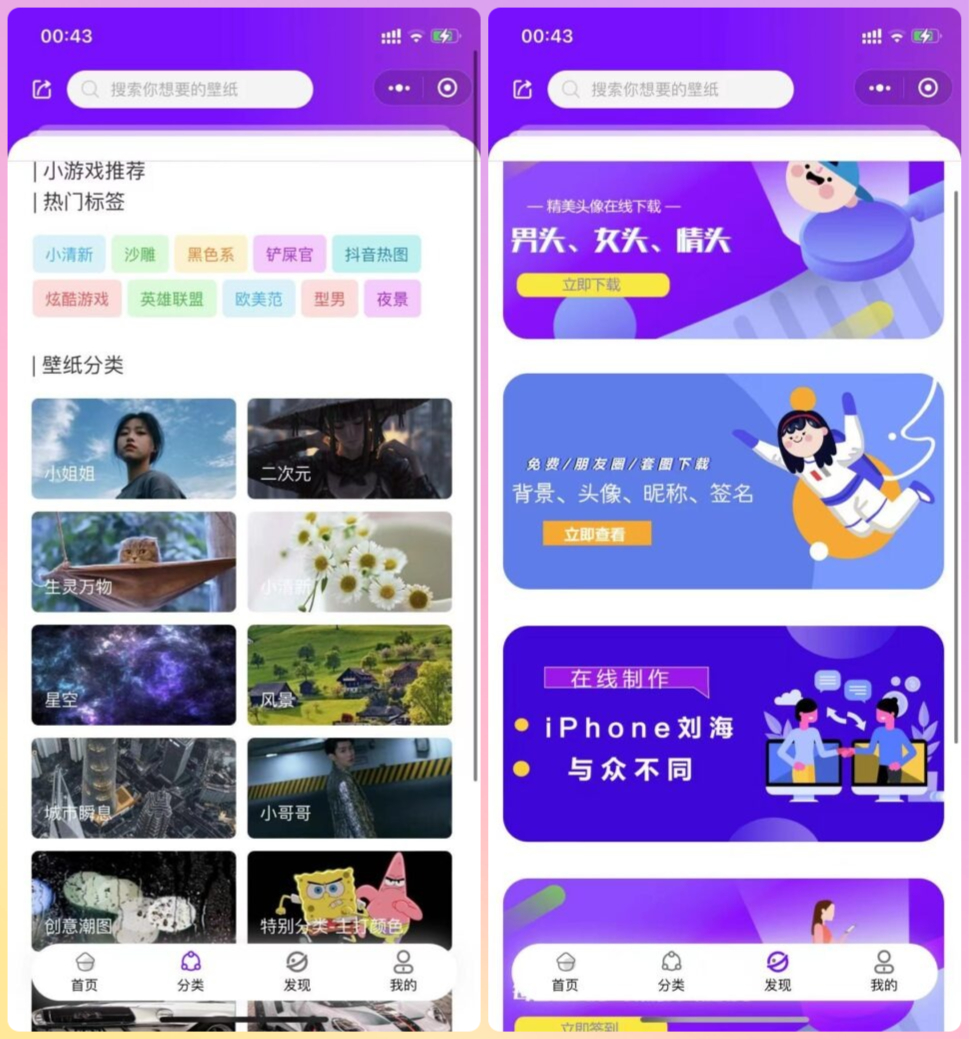 这是之前那个云开发壁纸二开版本,增加了一堆功能,去水印啊,外卖啊,昵称头像等等,不是我二开的,但按照教程安装了一遍确实可用,跟着教程一步一步就能搭建起来